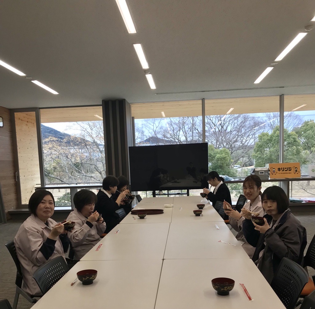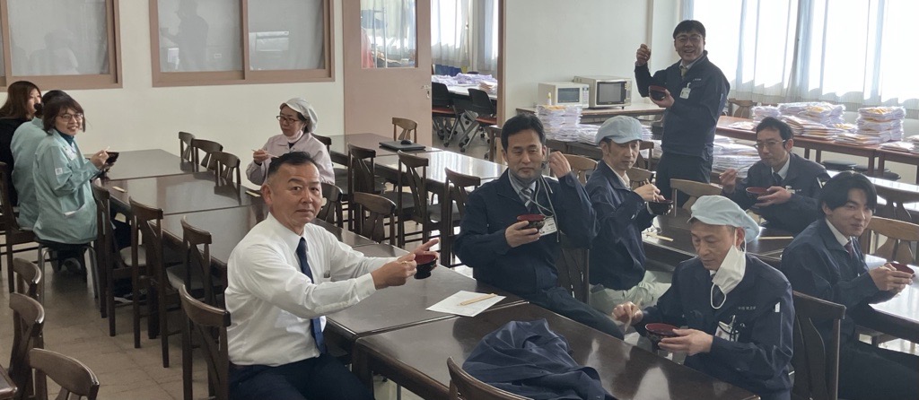 昼食時と15時にぜんざいの振る舞いがあり、社員全員でいただき、今年一年の無病息災と事業繁栄を確認する機会となりました。